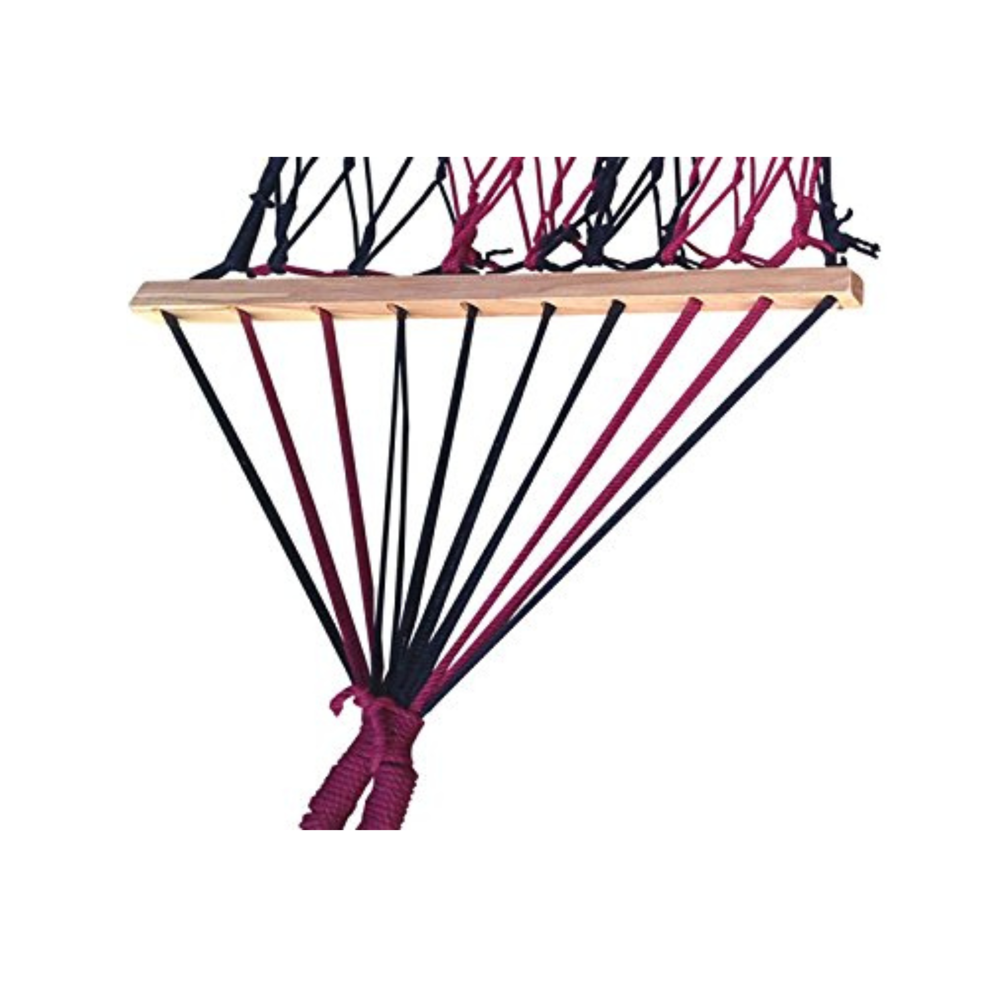 100% handwoven twisted 3 ply, 8mm diameter rope supported by hardwood spreader bars for durability & stability.